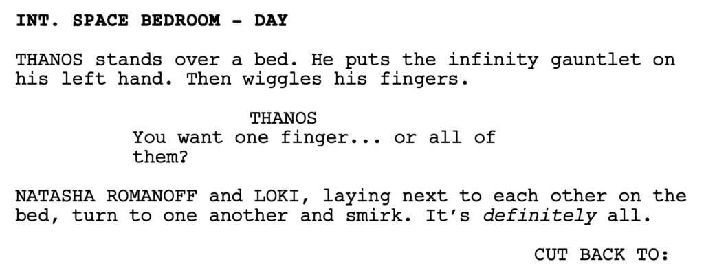 And just to be clear on why that’s important – because a lot of people think that the 3-act structure and all the sub-beats of that structure are only done to make screenwriting teachers happy. They don’t believe they’re actually useful for telling a story. Not true. This is something I’ll get into Friday, with my new article – the point of good structure is to move the story along. When you nail your structure, your script is always pushing forward. When you don’t, that’s when it feels to the reader like not enough is happening.