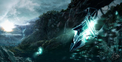 But don’t worry. A spaceship, winged, sleek and Lamborghini-meets-Bentley cool scoops Renko out of the nebulousness darkness. This spaceship possesses the feminine voice that helped Renko escape the moon colony.