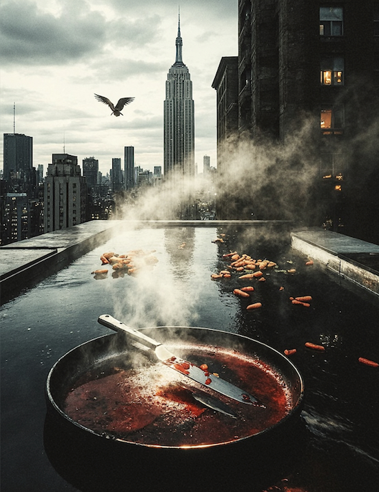 He’s later poisoned by raw carrots at a random restaurant and presumes it was Kat. He gets the sense that he’s being watched wherever he goes in the city. He comes home to his apartment one night to find his precious bird has been let out of its cage with the apartment window open. And he even comes home another night to find that dinner has been made for him (his favorite, foie gras).